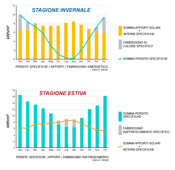 | Rispondenza a limiti di fabbisogno estivo | Valutati con pari severità di quelli invernali | Fabbisogni estivi stimati non influenti sulla classificazione | ||